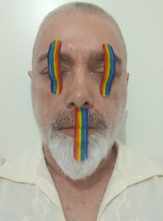 I colori dell’arcobaleno, segno di pluralità e diritti, vengono trasformati dall’artista in un linguaggio simbolico che unisce protesta e vulnerabilità. Ciotola utilizza il proprio volto come superficie espressiva per raccontare l’urgenza di essere ascoltati e rispettati, dando voce attraverso l’immagine a chi spesso non viene riconosciuto.